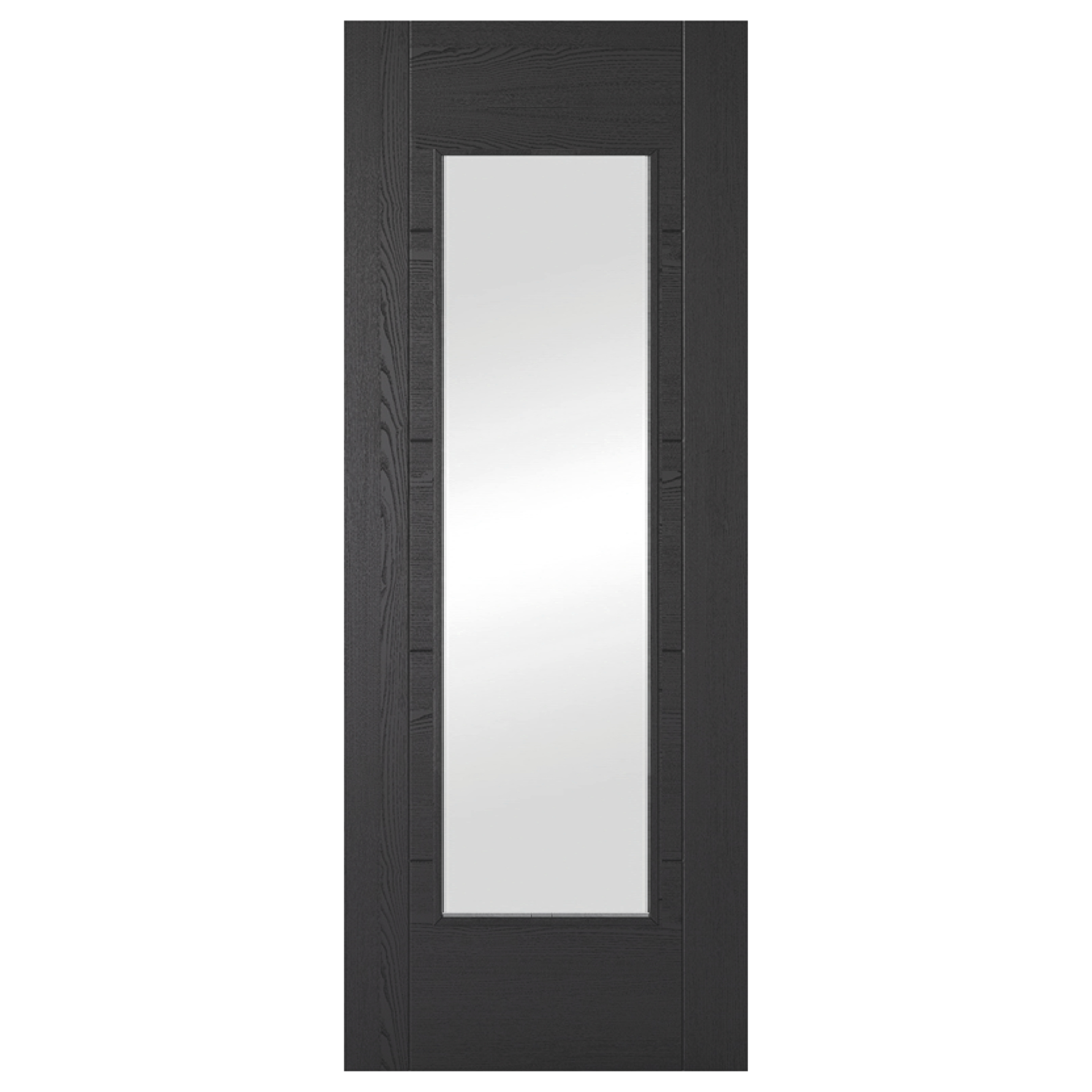 The Black Oak Iseo 1 Light Clear Glazed Internal Door combines premium materials with contemporary design, featuring a real oak veneer finished in a sleek Black RAL 9005 (10% sheen). With its clean lines and central clear glazed panel, this door is ideal for modern interiors where both style and natural light are key.